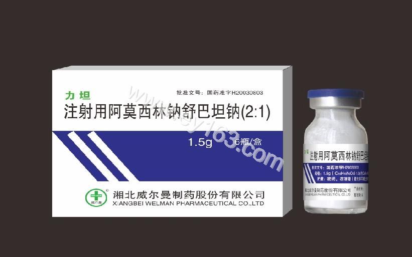 【药代动力学】阿莫西林阿莫西林钠快速静脉滴注0.5g后1分钟血药浓度为83-112mg/L,阿莫西林的蛋白结合率为17%,本品在多数组织和体液中分布良好。静脉注射本品各2g后1.5小时脑脊液中的药物浓度为2.9-40.0mg/L。本品可通过胎盘,在脐带血中浓度为母体血药浓度的1/4~l/3,在乳汁、汗液和泪液中也含微量。本品血浆消除半衰期(T1/2)为1.08小时,60%以上以原型药自尿中排出,约24%药物在肝内代谢,尚有少量经胆道排泄。严重肾功能不全患者血清半衰期可延长至7小时。血液透析可清除本品,腹膜透析则无清除本品的作用。舒巴坦钠:舒巴坦钠静脉滴注0.5g和1.0g后,血药峰浓度为30mg/L和68mg/L,血清半衰期为1小时,70%~80%经肾排泄,组织间液和腹膜分泌物的舒巴坦钠浓度和血中的浓度相当,脑脊液中的浓度可达到0.1~lmg/L。