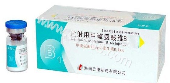 本品为复方制剂,其组分为:甲硫氨酸及维生素B1,每瓶含甲硫氨酸40mg,维生素B14mg。