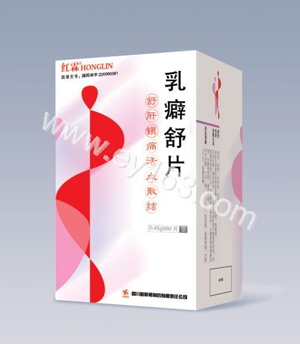 【药品名称】品名:乳癖舒片商品名:汉语拼音:Rupishu Pian剂型:片剂【成分】瓜蒌皮、蒲公英、丹参、赤芍、土贝母、柴胡、延胡索七味。【性状】【功能主治】舒肝解郁,活血解毒,软坚散结。用于肝气郁结,毒瘀互阻所致的乳腺增生,乳腺炎。【用法用量】口服,一次4片,一日3次。【不良反应】【禁忌】【注意事项】孕妇慎服。【规格】每片重0.53g【贮藏】【包装】【有效期】【执行标准】【批准文号】国药准字Z20060346【生产企业】企业名称:江西天施康中药股份有限公司