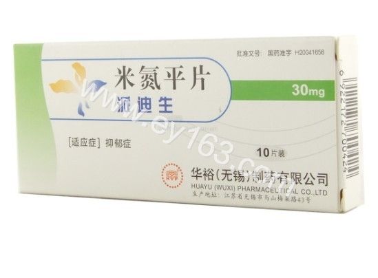 【药代动力学】米氮平很快被吸收(生物利用度约为50%),约二小时后血浆浓度达到高峰。约85%与血浆蛋白结合。平均半衰期为20-40小时;偶见长达65小时;在年轻人中也偶见较短的半衰期。清除半衰期的大小正适合于将服用方式定为每日一次。血药浓度在服药三至四天后达到稳志,此后将无体内聚积现象发生。在所推荐的剂量范围内,米氮平的药代动力学形式为线性。米氮平大多被代谢并在服药后几天内通过尿液和粪便排出体外。其主要生化方式为脱甲基及氧化反应在,随后是结合反应。脱甲后的代谢产物与原化合物一样仍具药理活性。
