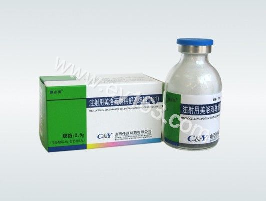 【药理毒理】药理作用本品为美洛西林钠和舒巴坦钠按4:1的比例组成的复方制剂。美洛西林属青霉素类广谱抗生素,主要通过干扰细菌细胞壁的合成而起杀菌作用;舒巴坦除对奈瑟菌科和不动杆菌外,对其它细菌无抗菌活性,但是舒巴坦对由β-内酰胺类抗生素耐药菌株产生的多数重要的β-内酰胺酶具有不可逆性的抑制作用。舒巴坦可防止耐药菌对青霉素类和头孢菌素类抗生素的破坏,舒巴坦与青霉素类和头孢菌素类抗生素具有明显的协同作用。本品对多种革兰氏阳性菌和革兰氏阴性菌(包括有氧和厌氧株)均有杀菌作用,而且体外对多数细菌产生的β-内酰胺酶稳定。体外试验表明,复方中的两药合用,可增强对多种产酶菌株如金黄色葡萄球菌、大肠杆菌的抗菌作用;与美洛西林单药比较,本品对不动杆菌属、粪产碱杆菌、粘质沙雷菌、产气杆菌、阴沟杆菌、枸橼酸杆菌、痢疾杆菌、绿脓杆菌等的抗菌作用均有不同程度的增强。另外美洛西林体外还对以下微生物有抗菌活性:肠杆菌、奇异变形杆菌、普通变形杆菌、摩根菌、枸橼酸菌属、克雷伯菌属、流感嗜血杆菌、副流感嗜血杆菌、奈瑟菌属、肺炎链球菌、消化球菌属、消化链球菌属、梭菌属、梭杆菌属、多形杆菌属等。毒理研究目前尚无本复方的遗传毒性、生殖毒性和致癌性研究资料,各单药的毒理研究可参考以下相关资料。美洛西林生殖毒性:在给予小鼠、大鼠和兔的剂量达人用剂量的2倍时,未发现本品有生育力损伤和对胎儿的毒性。但尚无充分和严格的孕妇临床研究资料,动物与人的相关性尚不清楚,所以只有当确实需要时,才能在妊娠期使用。本品能通过胎盘,并在脐带血和羊水中有很低的浓度。在哺乳的母亲的乳汁中可检测到低浓度的本品,因此在给予哺乳的妇女时应谨慎。舒巴坦生殖毒性:在给予小鼠、大鼠和兔的剂量达人用剂量的10倍时,未发现本品有生育力损伤和对胎儿的毒性。但是无充分和严格的孕妇临床研究资料,动物与人的相关性尚不清楚。