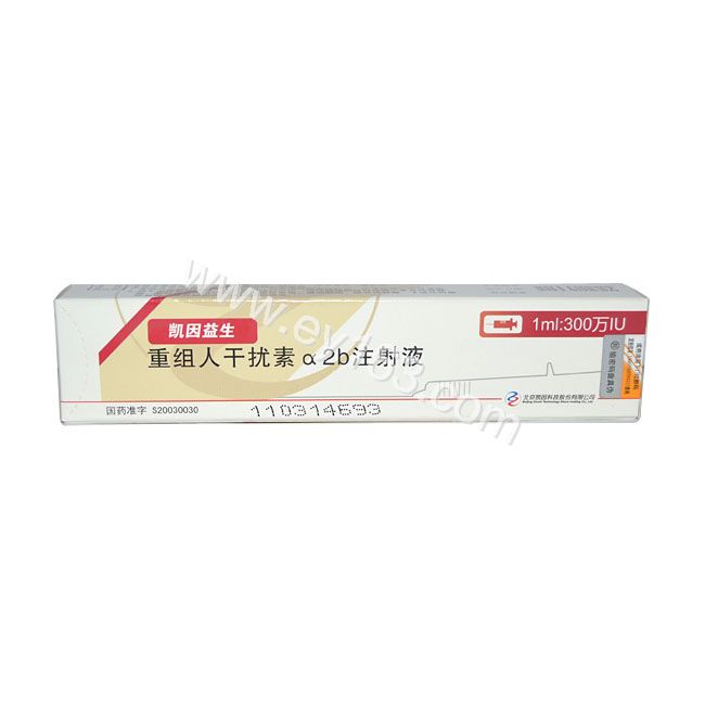 【药理毒理】药理:重组人干扰素α2b具有广谱抗病毒、抗肿瘤、抑制细胞增殖以及提高免疫功能等作用。干扰素与细胞表面受体结合,诱导细胞产生多种抗病毒蛋白,抑制病毒在细胞内繁殖,提高免疫功能包括增强巨噬细胞的吞噬功能,增强淋巴细胞对靶细胞的细胞毒性和天然杀伤性细胞的功能。毒理:急性毒性试验:小鼠腹膜内及静脉注射本品,给药剂量分别为1.5×109IU/kg和1.5×108IU/kg,是人用治疗量的105和104倍,未出现急性中毒症状,也无动物死亡。长期毒性试验:大鼠肌内注射本品,剂量为1.5×107IU/kg、1.5×106IU/kg和1.5×105IU/kg,每周5次,共6个月,大鼠一般情况、体重及行为均未见异常。家兔重复上述试验,三个月中未见毒性反应,家兔的内脏器官的病理组织检查未发现本品毒性造成的改变。