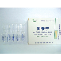 【药理毒理】降钙素是调节钙代谢,抑制甲状旁腺素的激素之一,它是显著地降低高周转性骨病的骨钙丢失,诸如骨质疏松症、变形性骨病(Paget氏病)、痛性神经营养不良症(Sudeck氏病)和恶性骨质溶解症,它对停经后骨质疏松症的躯干骨作用比四肢骨更显著和对高周转性骨病更显著。它能抑制破骨细鸡蛋活性,同时刺激成骨细胞形成和活性。降钙素也能抑制溶骨作用,从而使病理性长高的血钙浓度降低以及通过减少肾小管再吸收而增加尿钙、磷和血钠的排泄;然而血清钙不会降至正常范围以下。降钙素抑制胃和胰腺的分泌活动,但并不影响胃肠蠕动。临床试验证明本品对某些痛性骨病的病人具有止痛作用。所有的降钙素结构上相似,具有单链、排列不同的32个氨基酸。氨基酸的排列顺序取决于物种。鲑鱼降钙素对它的受体结合部位具有很高的亲和力(它的受体结合部位在中枢神经系统的某些区域也已经被证明),具有十分良好的临床效果并且比合成的哺乳类(包括人)的降钙素,作用持续的时间更长。