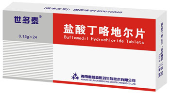 【药代动力学】盐酸丁咯地尔经静脉输注后,广泛分布于组织和体液,经肝脏代谢,消除半衰期约3小时,盐酸丁咯地尔主要以原形和芳香环去甲基代谢物由尿排出。盐酸丁咯地尔的血清蛋白结合率与血药浓度有关:血药浓度为0.5mg/L时,血清蛋白结合率为81%;血药浓度为5mg/L时,血清蛋白结合率为25%。