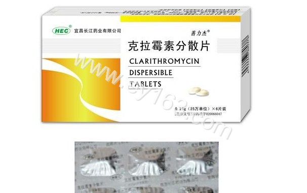 【药理毒理】1.药理:本品为大环内酯类抗生素,对革兰阳性菌如金黄色葡萄球菌、链球菌、肺炎球菌等有抑制作用,对部分革兰阴性菌如流感嗜血杆菌、百日咳杆菌、淋病奈瑟菌、嗜肺军团菌和部分厌氧菌如脆弱拟杆菌、消化链球菌、痤疮丙酸杆菌等也有抑制作用,此外对支原体也有抑制作用。本品特点为在体外的抗菌活性与红霉素相似,但在体内对部分细菌如金黄色葡萄球菌、链球菌、流感嗜血杆菌等的抗菌活性比红霉素强。本品与红霉素之间有交叉耐药性。本品的作用机制是通过阻碍细胞核蛋白50S亚基的联结,抑制蛋白合成而产生抑菌作用。2.毒理:本品除体外染色体畸变试验一次是弱阳性、另一次为阴性结果外,其他体外致突变试验如沙门菌/哺乳动物细胞微粒体试验、细菌致突变频率试验、大鼠肝细胞DNA合成测定、小鼠淋巴瘤测定、小鼠显性致死试验和小鼠微核试验均为阴性。生育、生殖研究表明,给雌性、雄性大鼠每日用克拉霉素160mg/kg(以体表面积计,是人用最大推荐剂量的1.3倍),对大鼠动情期、生育能力、分娩及子代的数量和存活率均无影响。每日给予猴子口服克拉霉素150mg/kg(以体表面积计,是人用最大推荐剂量的2.4倍),出现胚胎丧失。动物长期毒性研究未证实克拉霉素有致癌性。