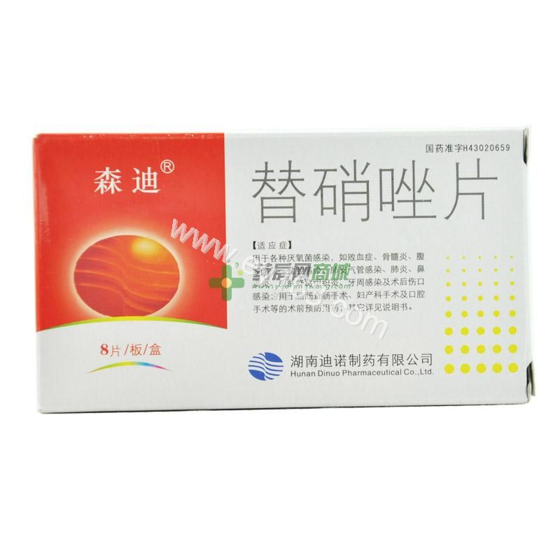 【药理毒理】本品对原虫及厌氧菌有较高活性。对脆弱拟杆菌等拟杆菌属、梭杆菌属、梭菌属、消化球菌、消化链球菌、韦容球菌属及加得纳菌等具抗菌活性,2~4mg/L的浓度可抑制大多数厌氧菌;微需氧菌、幽门螺杆菌对其敏感;对阴道滴虫的MIC与甲硝唑相仿,其代谢物对加得纳菌的活性较替硝唑为强。本品的作用机制尚未完全阐明,厌氧菌的硝基还原酶在敏感菌株的能量代谢中起重要作用。本品的硝基被还原成一种细胞毒,从而作用于细菌的DNA代谢过程,促使细菌死亡。耐药菌往往缺乏硝基还原酶而对本品耐药。本品抗阿米巴原虫的机制为抑制其氧化还原反应反应,使原虫的氮链发生断裂,从而杀死原虫。